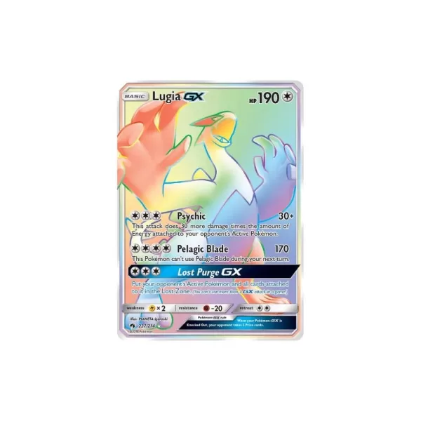 로스트 썬더는 당시 가장 거대한 포켓몬 세트였습니다. 루기아 GX의 아트워크는 위엄 있는 힘을 발산하며 두드러지는 존재감을 보였죠.